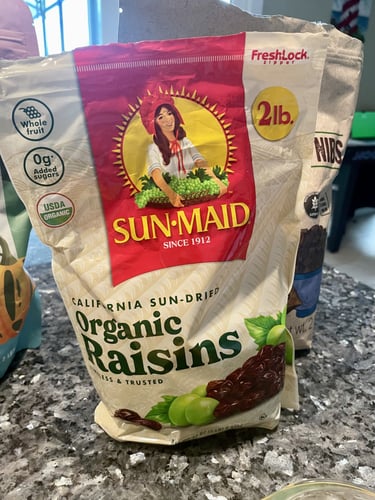 These raisins have no added sugar. One of the only ones we could find that tastes great. https://amzn.to/3JXW2Ys