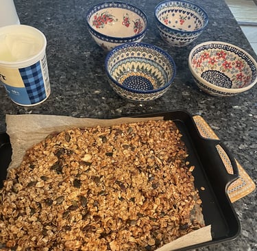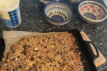 Remove from oven and wait to cool. The granola will harden after an hour.