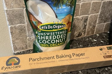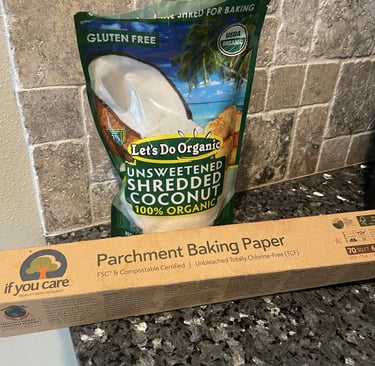 Gather all ingredients. Have a Cast iron baking pan with parchment paper on top.